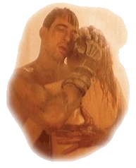 The head is meant to be sold forward to a short and shady dealer Alvy (Mark Northover), trooper-scavenger Hard Mo Baxter's (Dylan McDermott) regular buyer. But Alvy wanders off just at a nick of time for the tripper to arrive. Mo, having just returned from the military, remembers it's Christmas and gets the head as present for his artist-girlfriend Jill (Stacey Travis). Naturally, nobody has a clue about what the Hell the head really is. It's in fact a prototype of the new MARK-13 series. Named after a Bible passage ("No flesh shall be spared"), it's the goverment's response to the uncontrollable population growth. Equipped with cell-destroying toxin, which "smells like apple pie", the droid is actually a real humanitarian, because the toxin makes the victims enjoy their rabid demise. The subtext isn't left with something so discreet as the pie; Jill paints the stars and stripes into the droid's head and also attaches some scorched baby dolls to it.