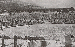 The scene is a direct re-creation of a precise moment from a vanished hour of a vanished day from my own childhood. Incarcerated in a Catholic military academy for two years, I learned swiftly that if I could shoot straight I would be exempt from the tiresome and degrading ritual of square-bashing and formation-marching. Lying on my belly in the dust, squinting down the barrel of my rifle, I felt strangely superior to the other boys, who were forced to march in endless circles in the midday sun. If my aim was good, the monks smiled on me and I was treated to time off and away trips for competitive shooting competitions.