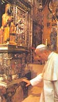 In fact, a Phrygian statue of Cybele graven from a single meteoric 'aerolite' (Cumont, Oriental Religions in Roman Paganism, 1911, pp.46-7) was apparently presented to Rome by King Attalus in 204 BC. The ecstatic rites of Cybele's worship, whilst initially a little alien to the Roman temperament, seem to have caught on with the populace, who venerated her in the Phyrgianum, the vast temple that once stood on the site of the present-day Vatican. The high priest who presided over those frenzied rituals was known as 'Papus', or father, the direct ancestor of the present day Pope, the head of the patriarchal Holy Roman Church. As her worship spread throughout the Empire, icons made in her image proliferated, painted black not because of the skin of the Egyptians, the dark alluvial soil of the Nile, or some obscure Arabic root word, but because the template on which she is based, the original statue that held sway over Rome was made of a black stone. Behind the masks of Christianity and Islam the Goddess, the Grail and the bleeding stones were one all along.